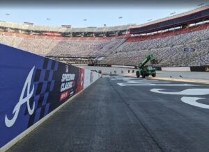 (IMAGE: Scenes from prep work starting at Bristol Motor Speedway for August’s MLB Speedway Classic. Their work and innovation with special events has left Bristol officials fielding phone calls about using BMS and not having to actively market the Coliseum. J. Olsen – Bristol Broadcasting Co NEWS)